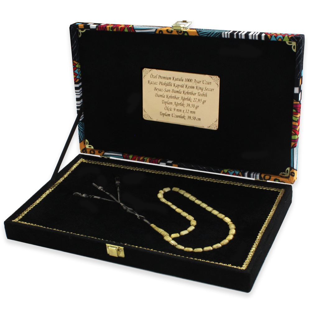 Tesbihinizin hem güvenle saklanacağı hem de estetik bir şekilde sergileneceği, tamamen el işçiliğiyle hazırlanmış özel bir kutu. Doğal ahşap ve kadife astarın mükemmel uyumu, tesbihinize lüks bir dokunuş katarken, aynı zamanda uzun ömürlü kullanım sağlar. Kutu rengi ve deseni stok durumuna göre değişiklik gösterebilir.
