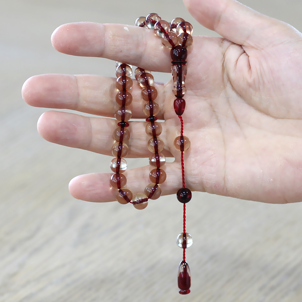 Ateş kehribar, bilinenin aksine kehribar tozlarının işlenmesi sonucu elde edilen bir madde değildir. Kehribar taşı ile başka maddelerin etkileşime girmesi ile ortaya çıkan bu değerli maddenin üretimine ilk olarak 1700’lü yıllarda başlanmıştır. Ateş kehribar, günümüzde gerçek kehribarlar kadar değerlidir. Maliyetinden dolayı gerçek kehribarlara tercih edilmektedir. En çok talep gören tesbih türüdür.