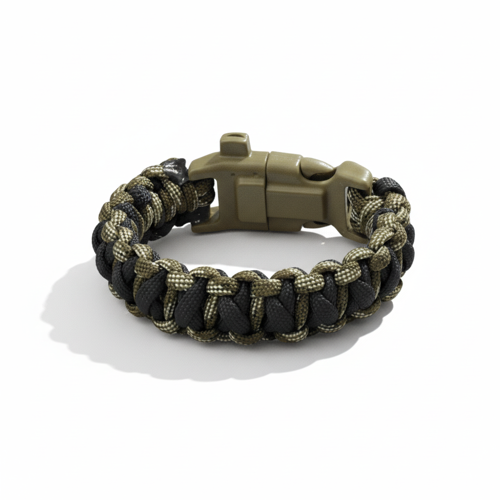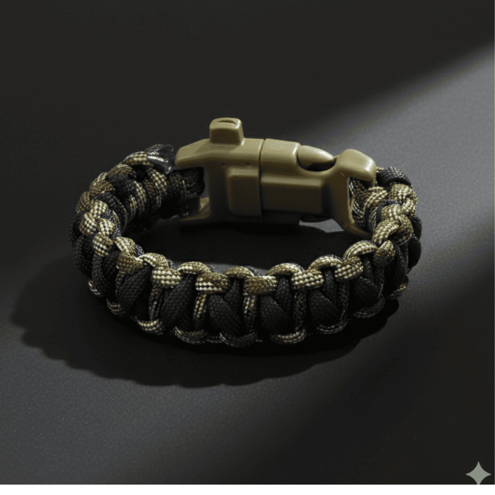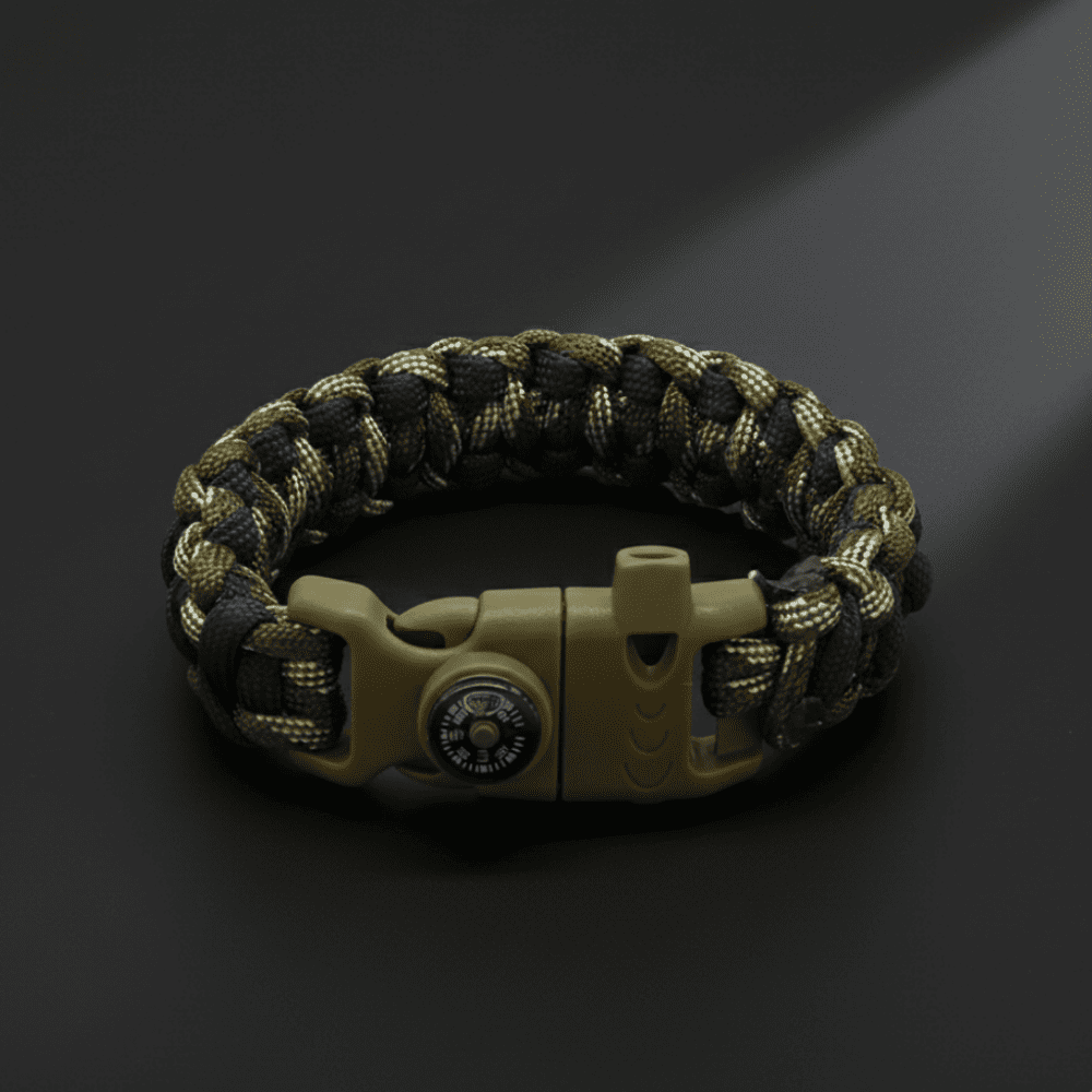 Zorlu doğa koşullarına meydan okumak isteyenler için tasarlanan paracord bileklik, dayanıklı yapısı ve çok yönlü fonksiyonlarıyla öne çıkar. Entegre pusula yön bulmayı kolaylaştırırken, çakmak (ateş başlatıcı) özelliği kamp, doğa yürüyüşü, avcılık ve dağcılık gibi outdoor aktivitelerde güvenli bir yardımcı sunar. Ayrıca entegre düdük özelliği sayesinde acil durumlarda yardım çağrısı yapmayı mümkün kılar.Taktik paracord halat örgüsü, gerektiğinde çözülerek ip olarak kullanılabilir ve hayatta kalma senaryolarında kritik bir ekipmana dönüşür. Şık ve ergonomik tasarımı sayesinde bileğe rahatça oturur, hafif yapısıyla uzun süreli kullanımlarda konfor sağlar.Asker kamuflaj, orman, deniz, şehir, gece, alev, avcı, gri, bordo-yeşil ve mor gibi farklı desen seçenekleriyle hem işlevselliği hem de tarzı bir araya getirir. Hem erkek hem kadın kullanıcılar için uygun olan bu bileklik, kamp ekipmanı, doğa sporu aksesuarı ve hayatta kalma bilekliği arayanlar için mükemmel bir seçimdir.