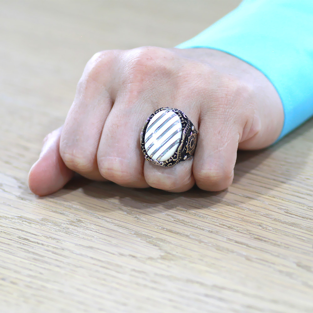 Fildişi: Bilindiği üzere filin savunma aracı olarak kullandığı kemiksi yapılı,uzun dişleridir. İlkçağdan bu yana süs eşyaları yapımında kullanılmıştır. Ürünlerimizde Yaşamını Doğal Şartlarla Tamamlayan Fillerin dişleri kullanılmaktadır. Ürünlerimizi sizin verdiğiniz parmak ölçüsüne göre gönderiyoruz. Parmak ölçüsünde en sağlıklı yöntem, parmağınızı bir kuyumcuda veya gümüşçüde ücretsiz ölçtürmektir. Alyans hariç diğer yüzükleri bulunduğunuz bölgedeki gümüşçülerde parmağınıza göre büyültme veya küçültme işlemi yaptırabilirsiniz. Her gümüş yüzük 4-5 numaraya kadar büyüyebilir ve küçülebilir. Dilerseniz "Yüzük Ölçüsü Hesaplama" linkini tıklayarak da ölçünüzü belirleyebilirsiniz.